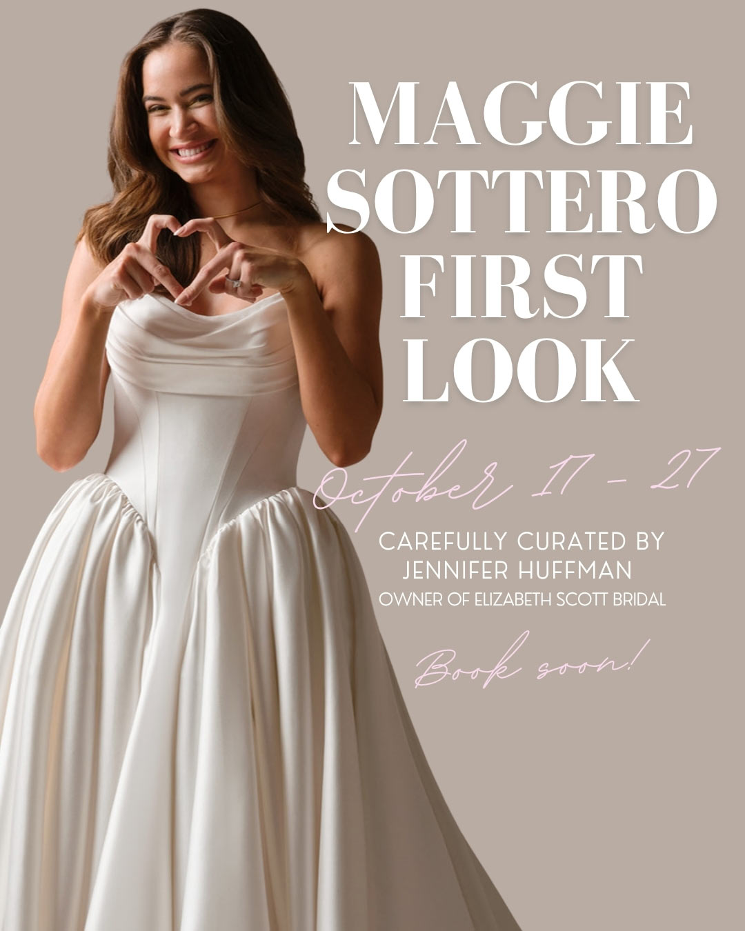 Experience the magic of being first. Elizabeth Scott Bridal is honored to host an exclusive Maggie Sottero First Look Event, curated by our owner, Jennifer Huffman, featuring never-before-seen designs.