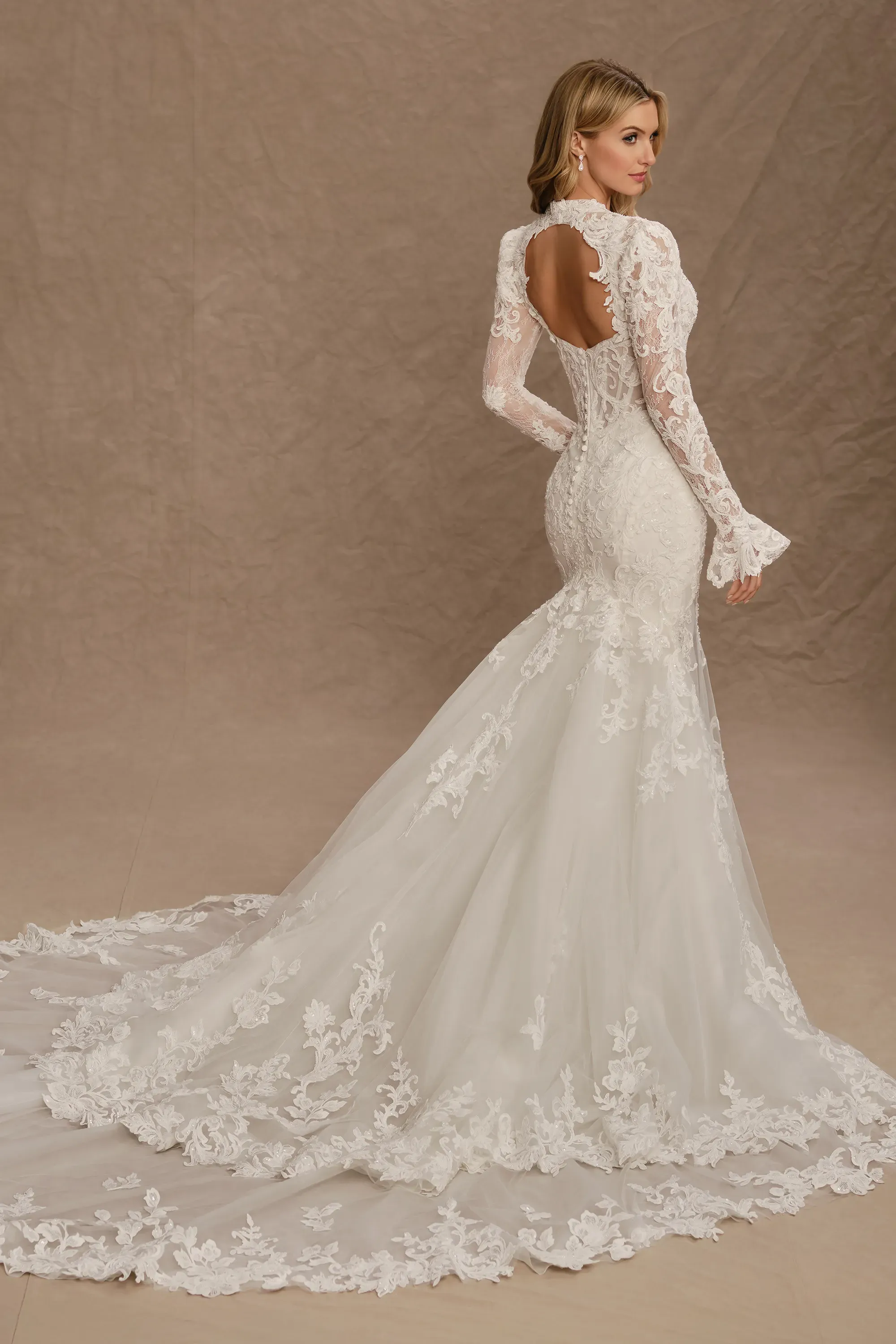 For best results, we advise having a professional seamstress or tailor take your measurements. If you measure in between sizes, we recommend ordering the size larger and tailoring the gown down for a perfect fit. Please note that most gowns will require alterations regardless of measurements.